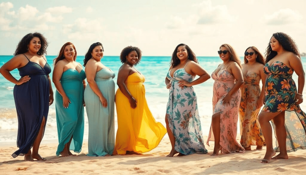 This summary on plus size beach dresses stresses the importance of colors. They affect how confident you feel and how fabrics react to sun and salt. Dark colors like navy make you look slimmer. Warm colors add elegance. Bright colors draw attention to your face, and light pastels are breezy and soft.