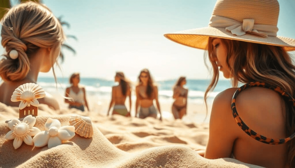 Remember a short checklist for beach hair: choose swim-proof and gentle accessories. They should be good with humidity, salt, wind, and sunscreen. The best picks include strong claw clips, silk or waterproof scrunchies, spiral ties, and French pins. These keep your hair safe from breakage and frizz.
