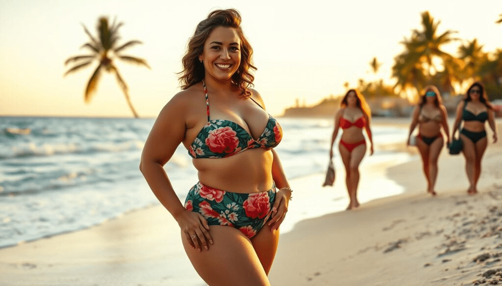 - Supportive swimwear for curvy bodies: performance fabrics and sport cuts.